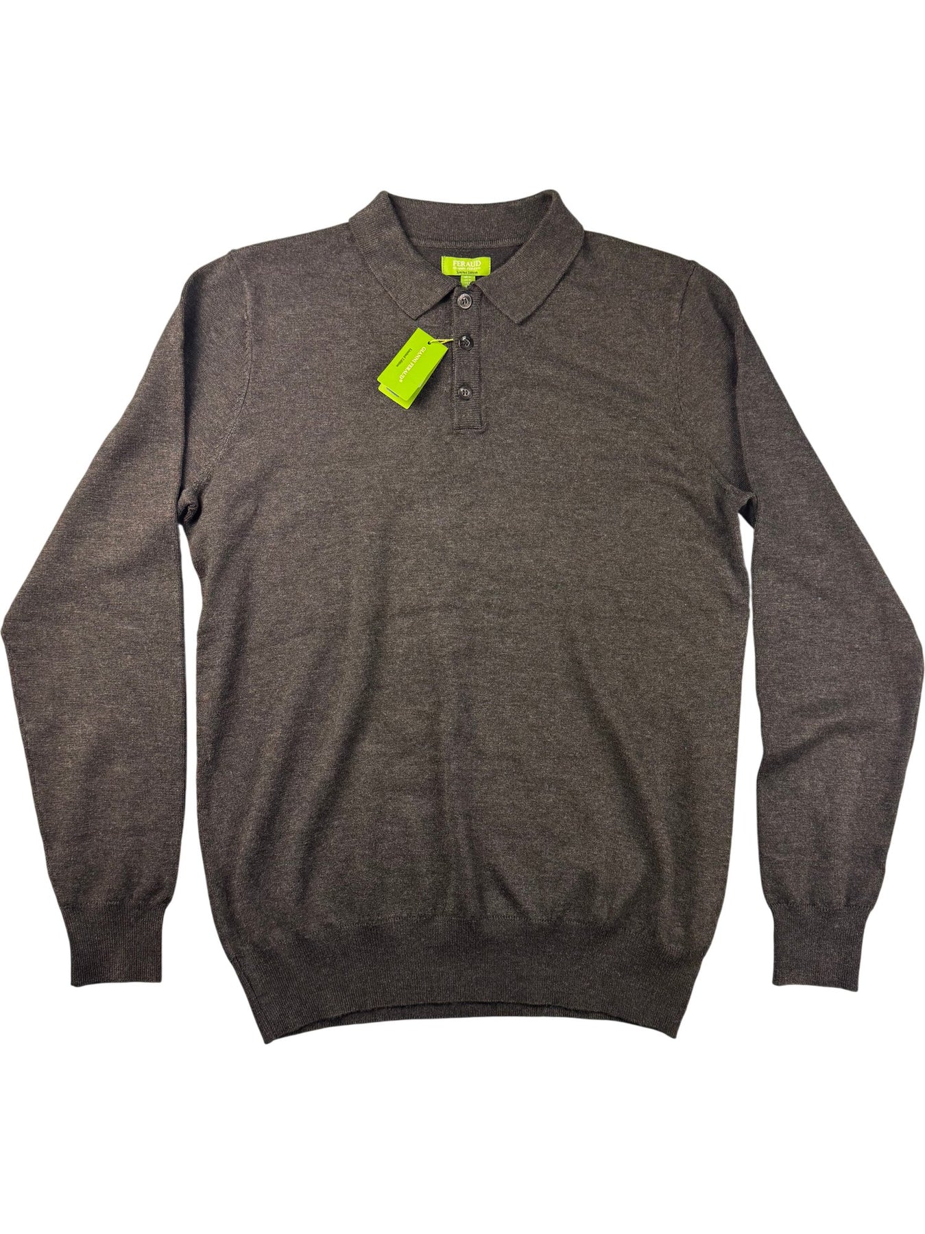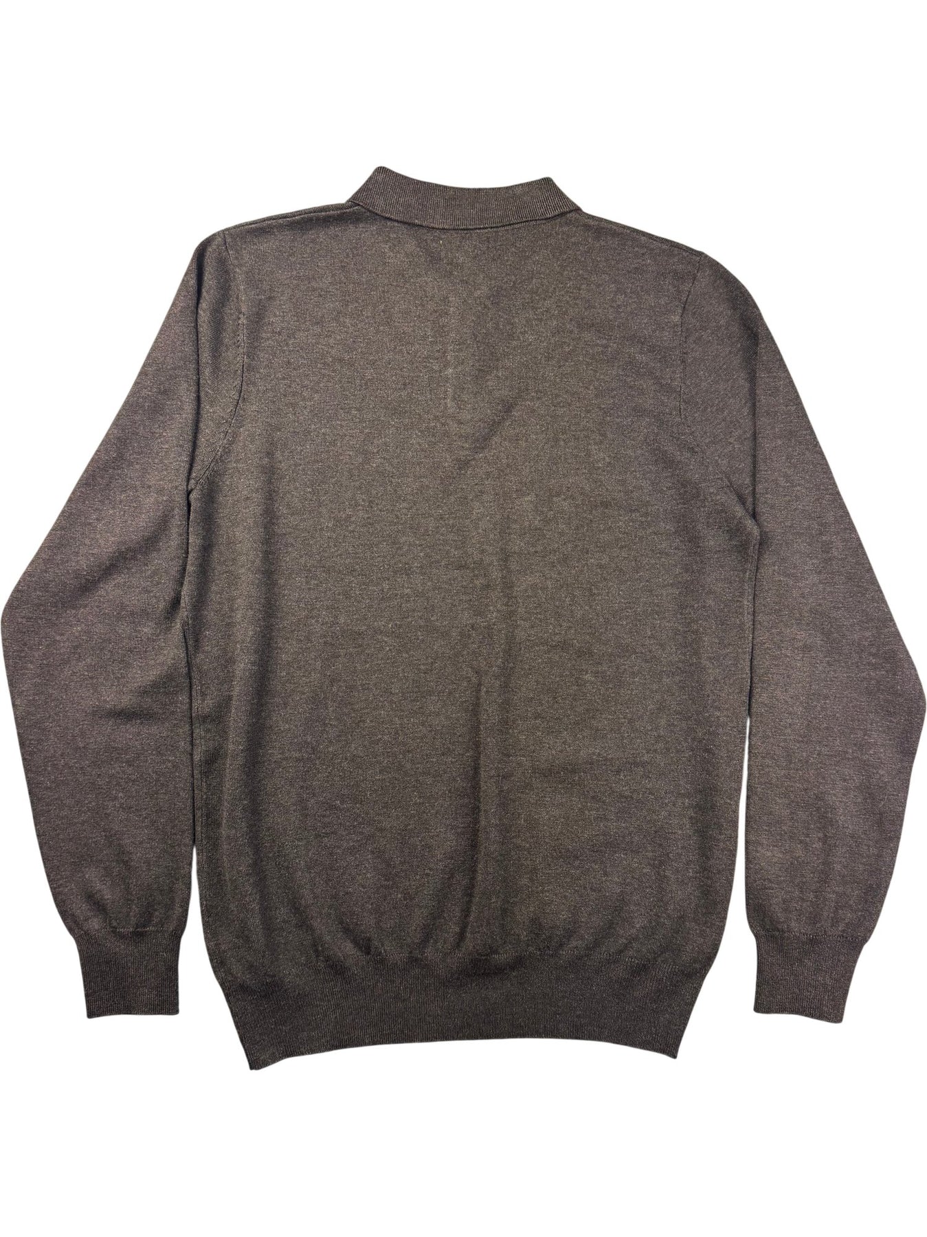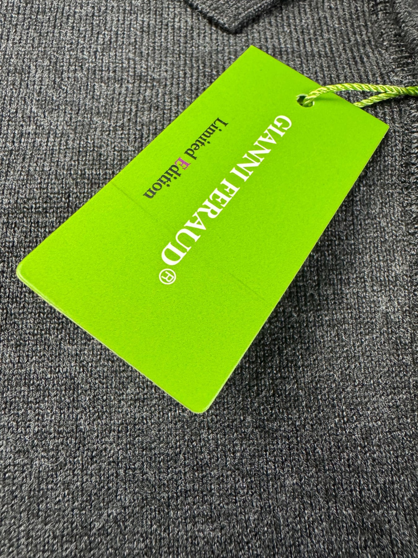 Gianni Feraud limited edition sweater featuring a classic polo collar and button closure. Made from 78.8% viscose and 21.2% nylon, providing a soft and comfortable feel. The colour is charcoal melange, offering a sleek and sophisticated look.