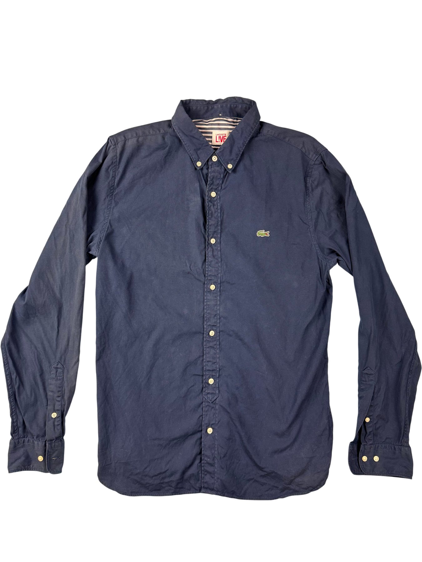 This shirt features a classic button-down front with a pointed collar. Made from high-quality fabric, it showcases the Lacoste crocodile logo on the chest, adding a touch of brand identity. The shirt's design includes long sleeves with buttoned cuffs for a sleek look.