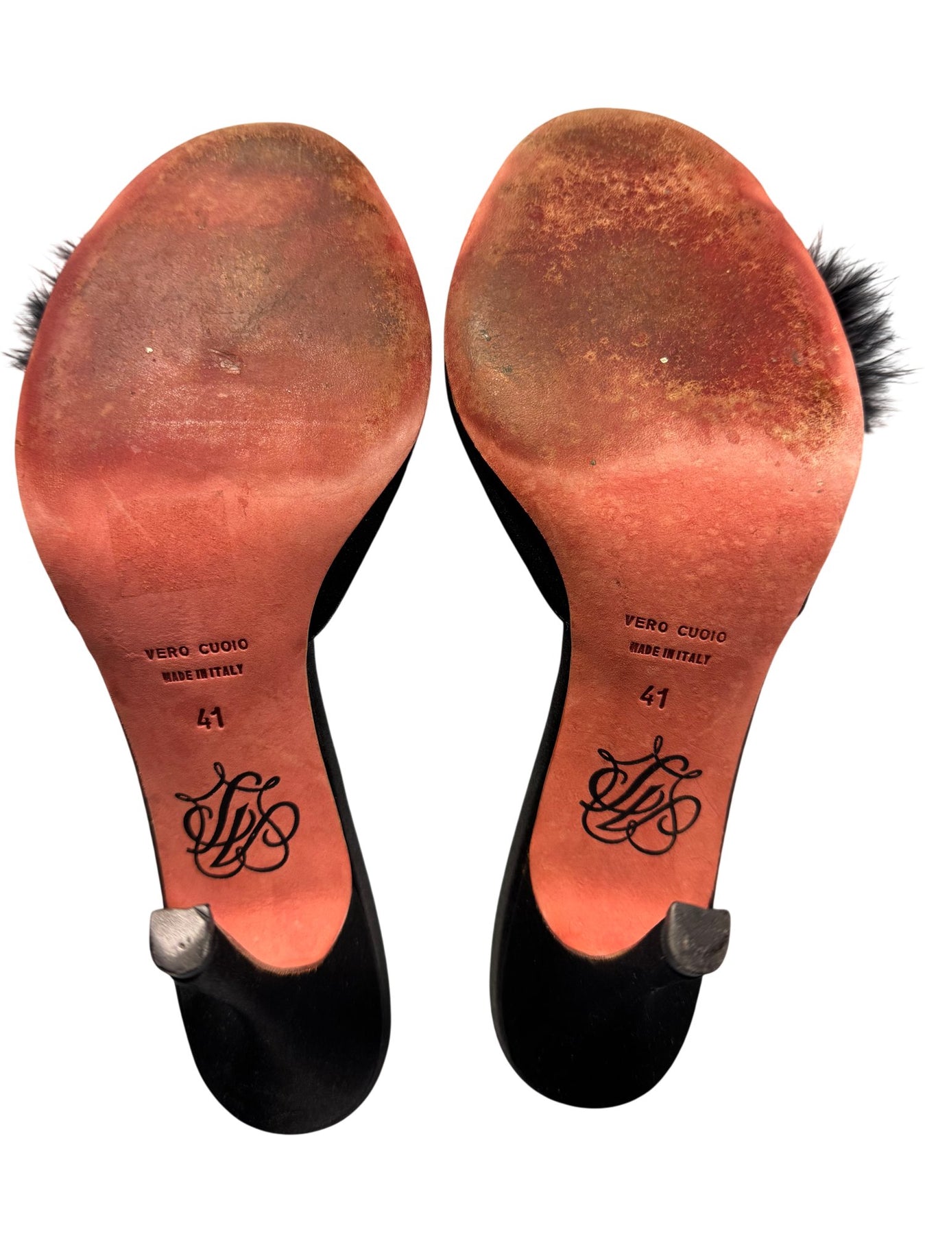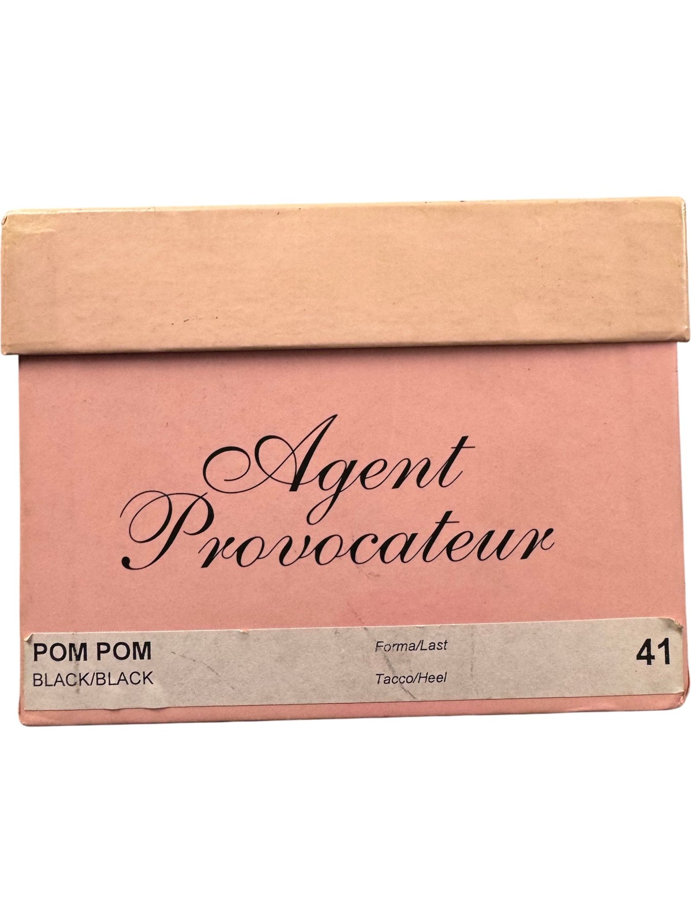 Agent Provocateur heels featuring black faux fur pom poms on the front. Made with quality materials including leather insoles, marked as size 41.