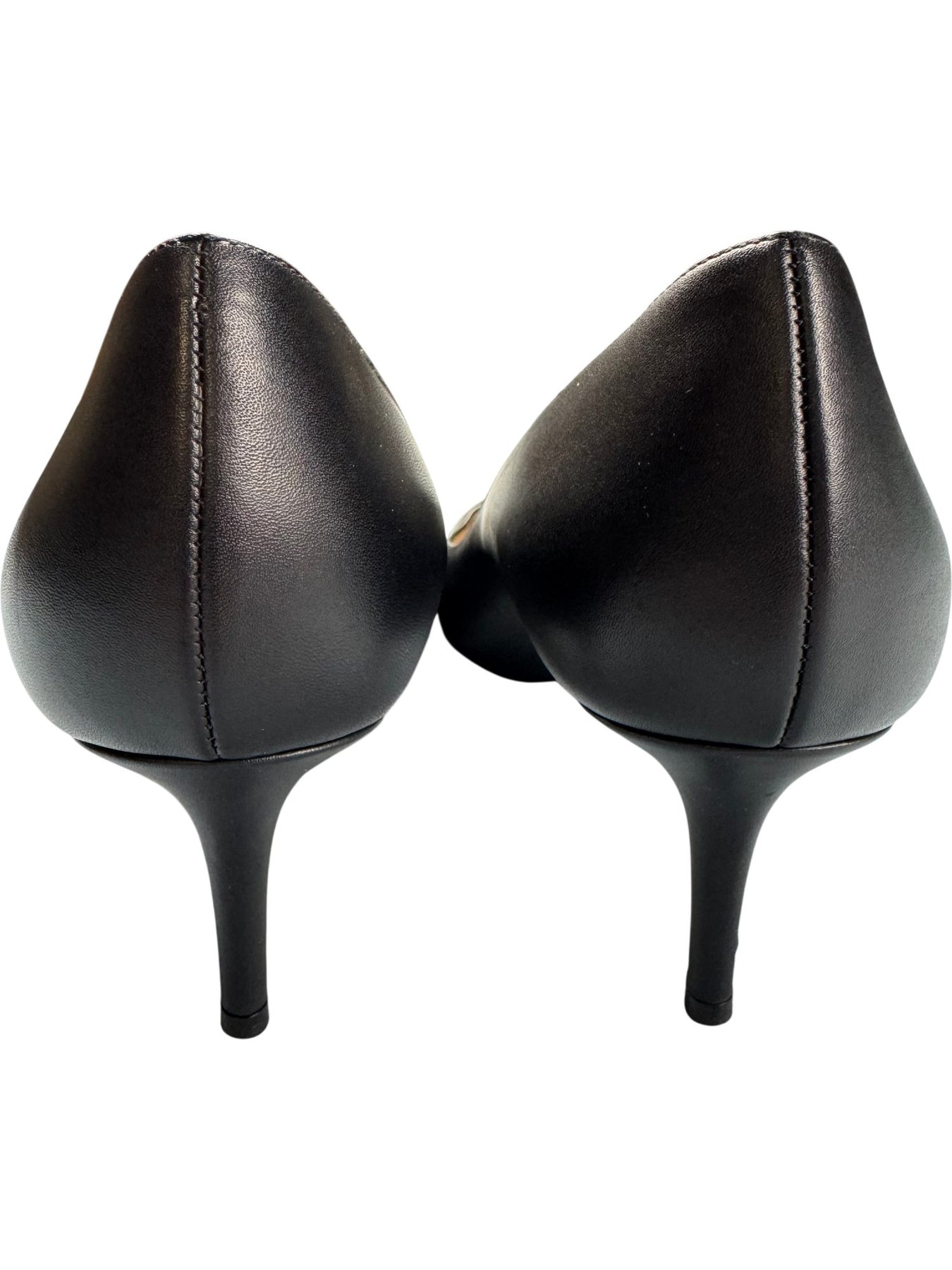 Black leather upper with a pointed toe design. Classic pumps with leather lining and sole. Made in Italy by Valentino Garavani.
