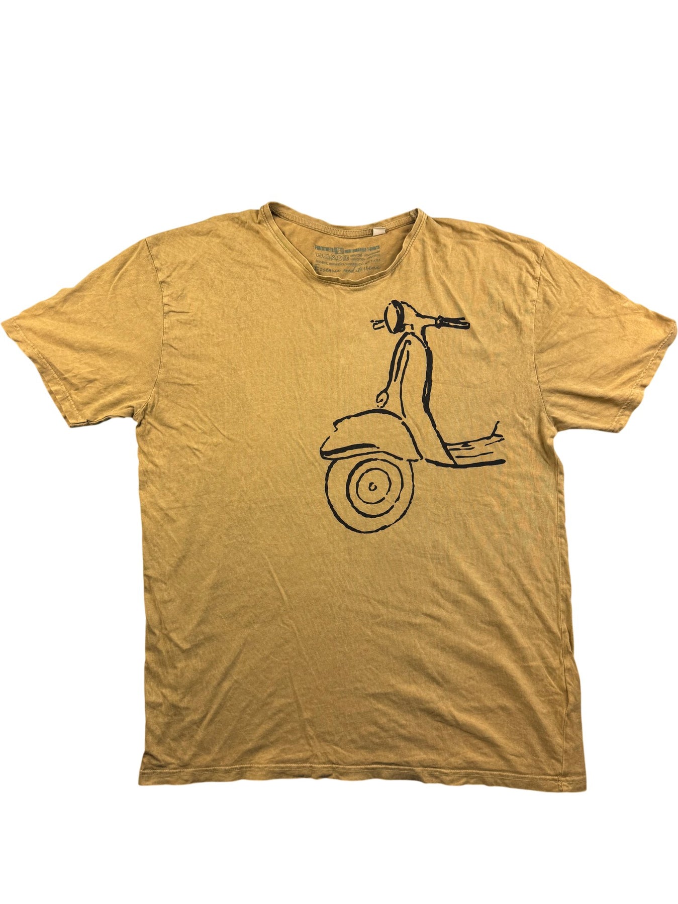 100% cotton T-shirt with a graphic scooter print. Short sleeves and round neckline. Printed label on inside back of neck.