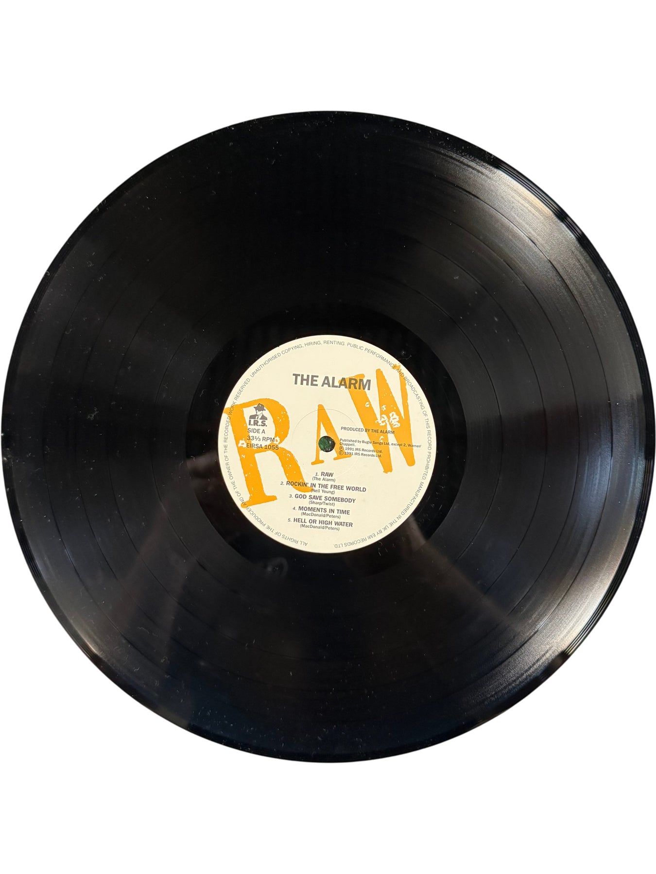 Vinyl record by The Alarm released in 1991 featuring tracks such as 'Raw' and 'Rockin' In The Free World'. Contains a mix of original songs and covers.