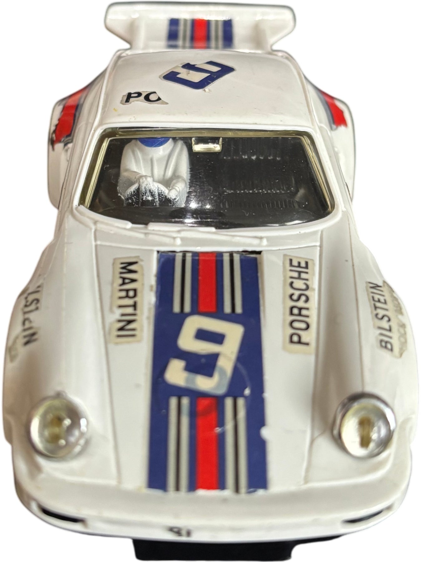 This Scalextric car features the classic Porsche 911 Turbo 935 model. It is designed for electric model racing and includes a detailed livery with racing numbers. Compatible with standard Scalextric tracks for seamless racing.