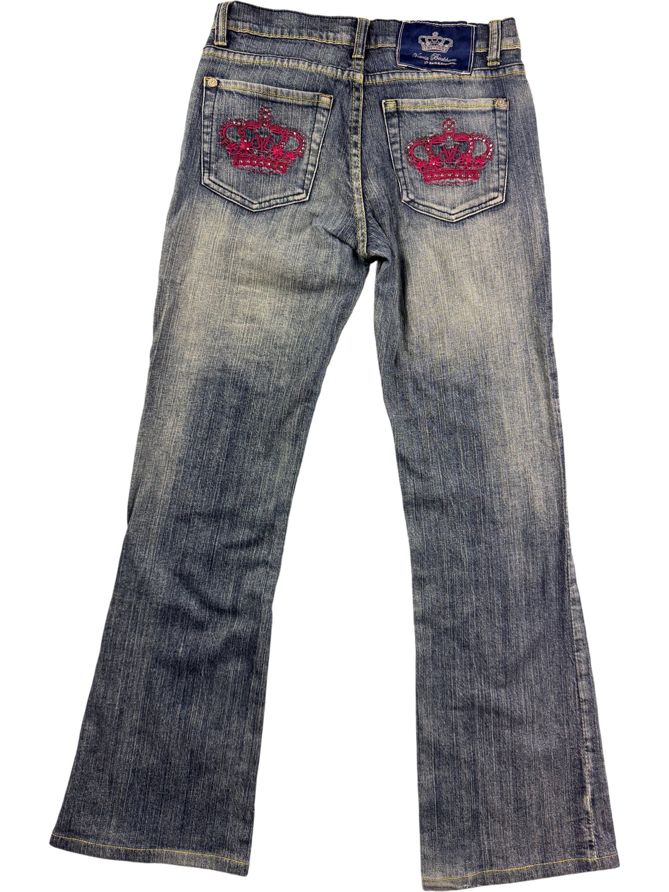 Classic denim jeans by Victoria Beckham for Rock & Republic. Feature a unique embroidered crown design on the back pockets. Made in the USA with quality craftsmanship.