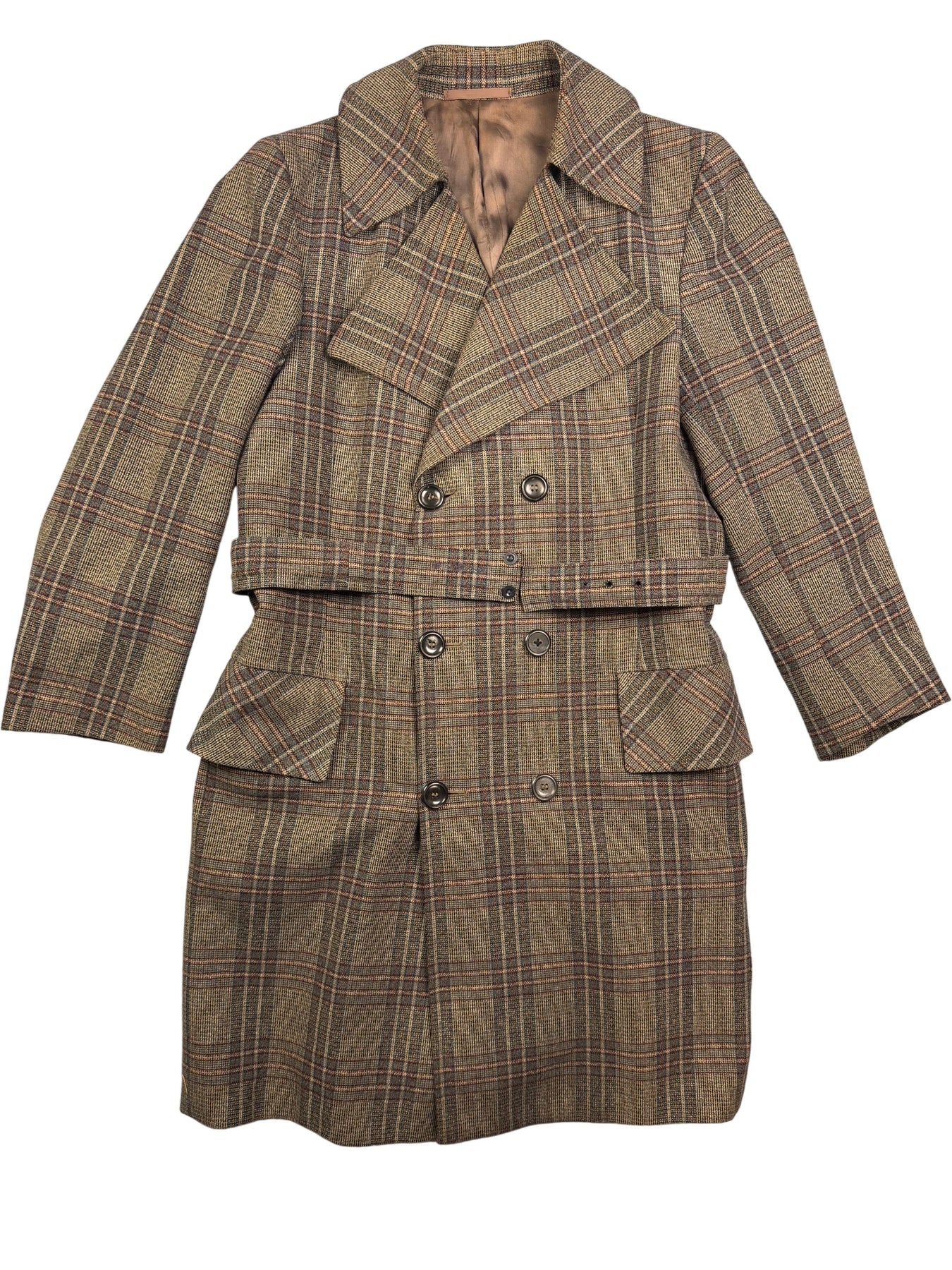 1970s Wool Plaid Trench Coat