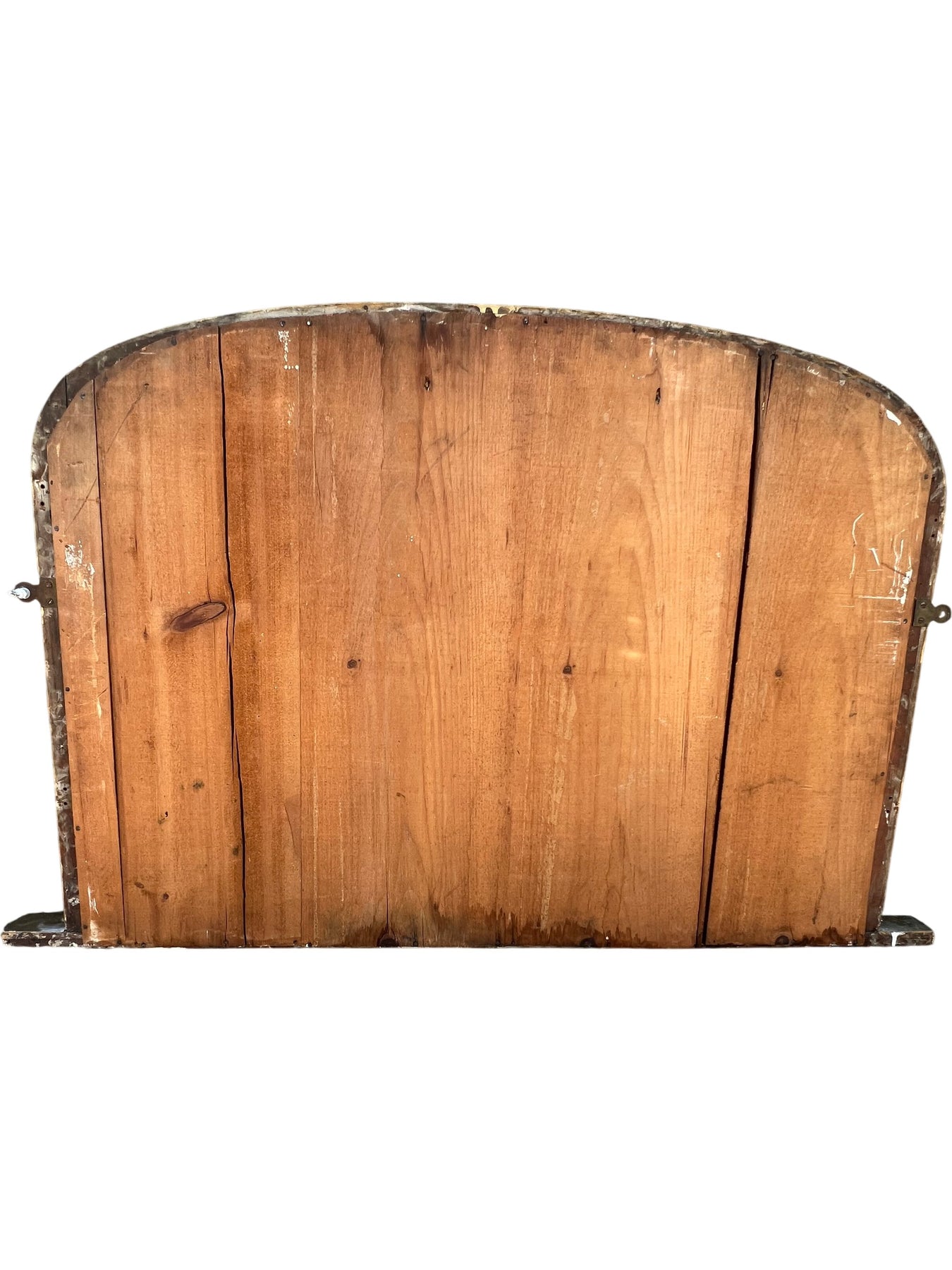 Arch-topped mirror with a brass frame featuring a reflective panel. The frame is sturdy with a classic design.