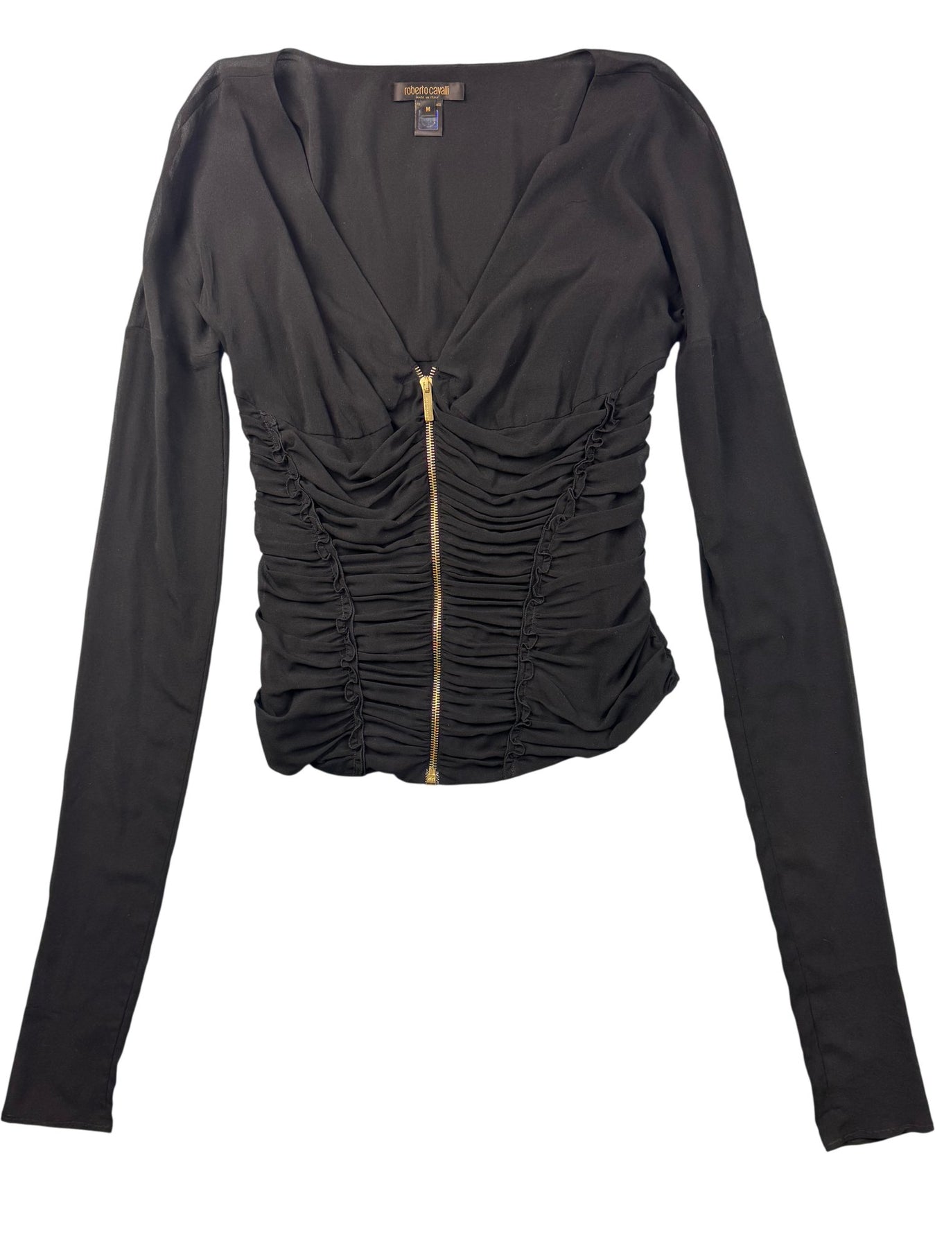 Roberto Cavalli Ruched Black Long Sleeve Top - XS/S