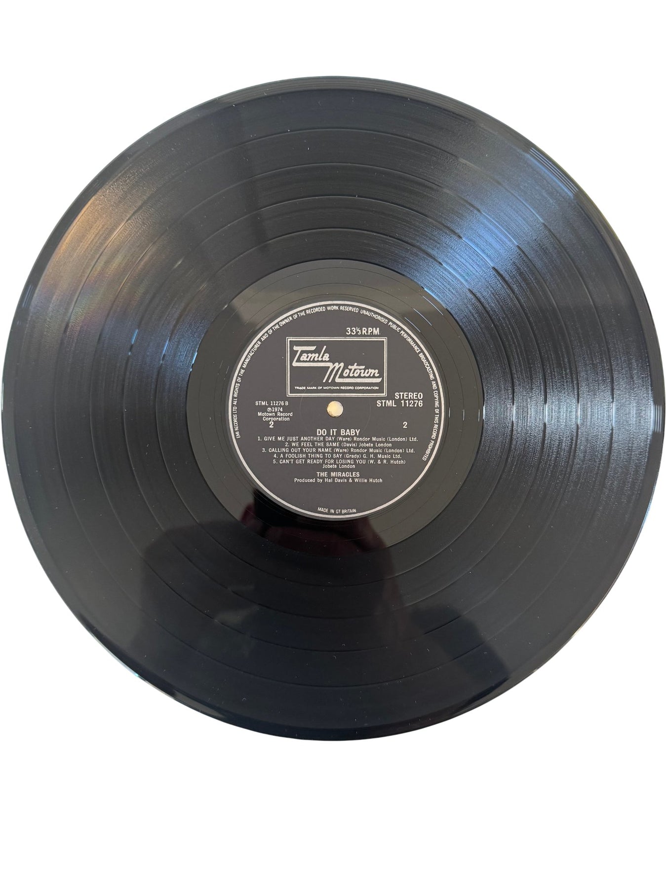1974 vinyl record by The Miracles featuring the album 'Do It Baby'. Includes tracks like 'Up Again' and 'Give Me Just Another Day'. Produced by Freddie Perren, Hal Davis, and Willie Hutch under the Tamla Motown label.
