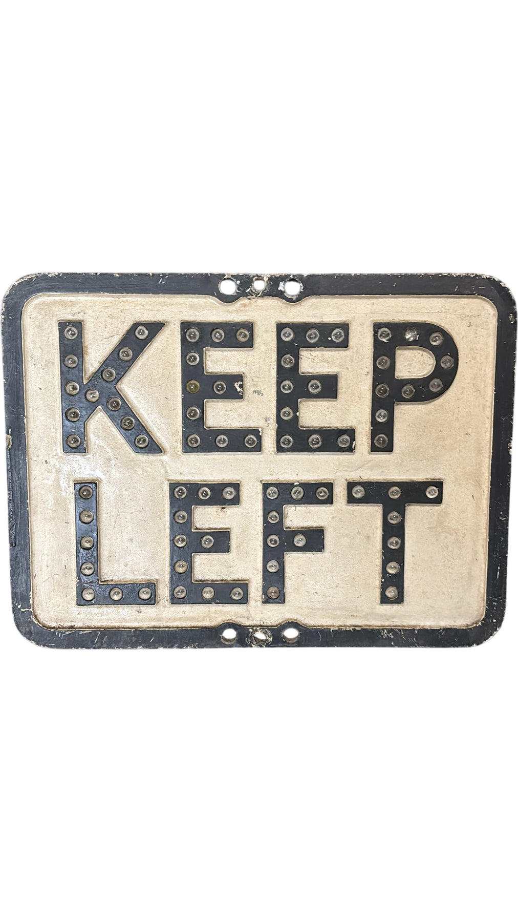 Vintage Keep Left Sign Black White Reflective Letters Mid-Century Sign